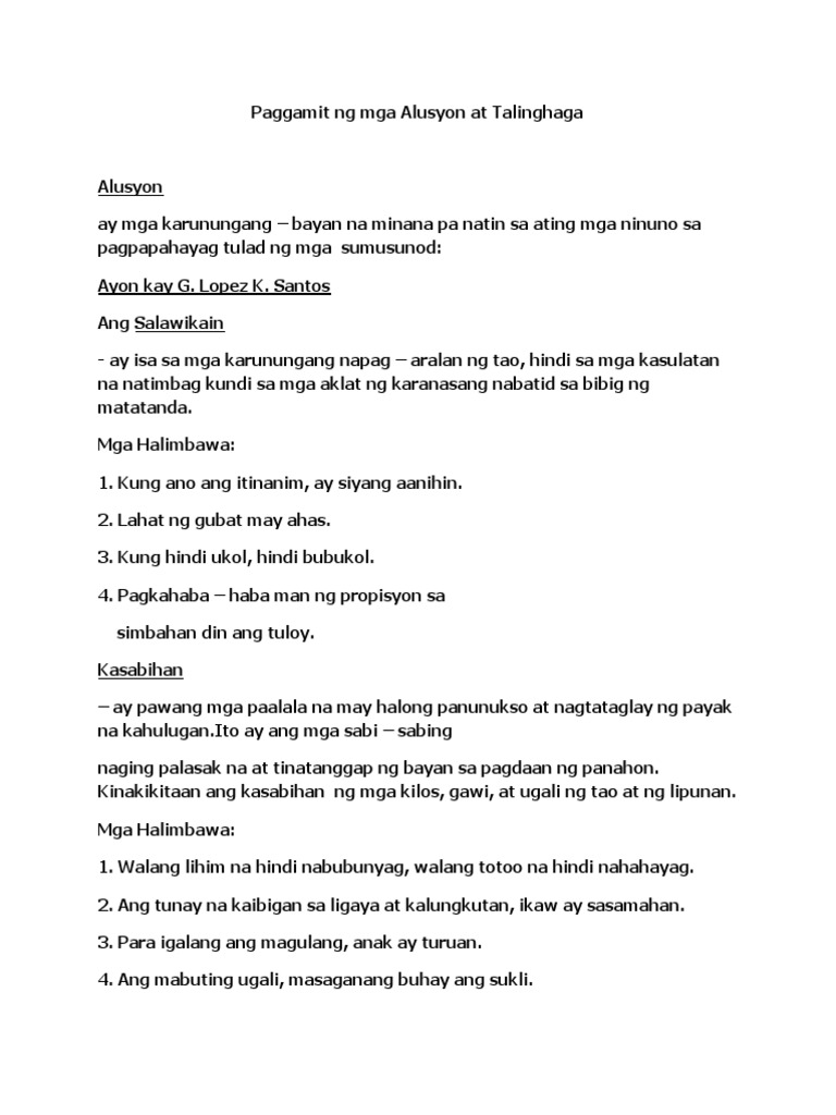 Paggamit Ng Mga Alusyon At Talinghaga Pdf