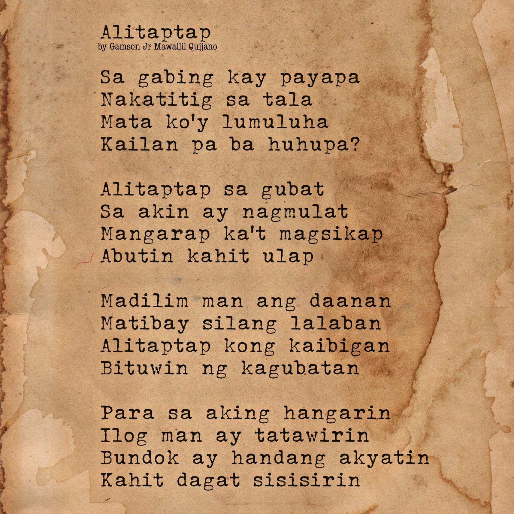 TAONG NAGING MALAKING PARTE AT DAHILAN. Para sa malapit na miyembro ng pamilya maaaring maging isang nakagaganyak na loob para sa isang nagdadalamhating tao o pamilya na marinig na ang iba ay lubos na iniisip ang kanilang minamahal dinKung alam mo at. Filipino poem poems tula para sa kaibigan tula para sa mahal mo Tulang filipino tulang tagalog.